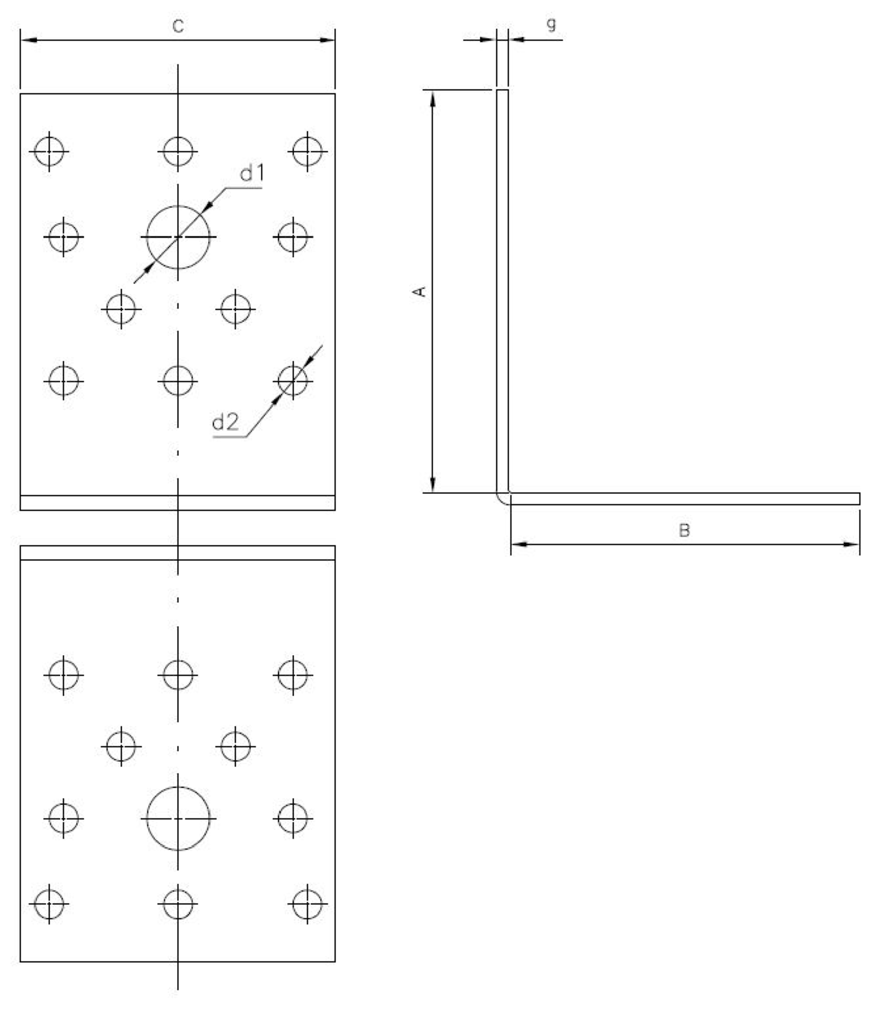 These brackets provide strong, aesthetic, and professional connections between various structural components, primarily wooden ones. They also facilitate the joining of wood with concrete and steel. The brackets are made from galvanized steel.