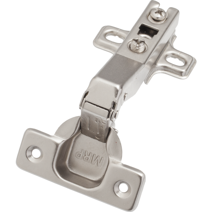 Angled Hinge - 45° with Mounting Plate is a furniture component that enables the installation of corner doors at a 45-degree angle. This product is used in furniture such as corner cabinets to facilitate convenient and efficient use of corner space in a room.