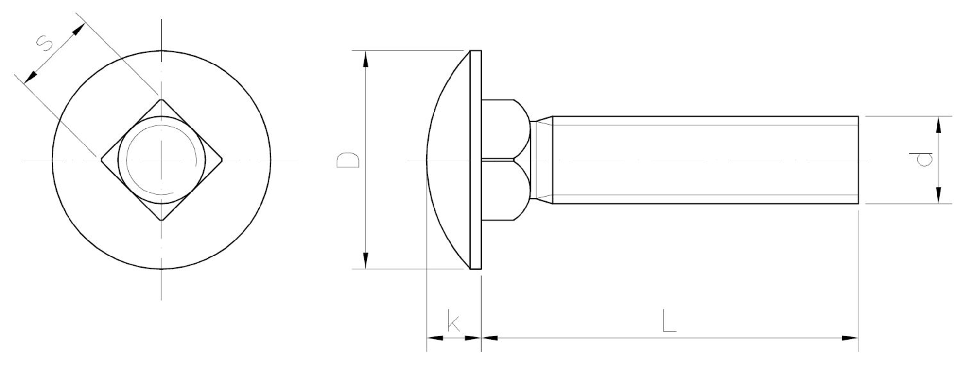 The carriage bolt with a mushroom head and full thread is ideal for situations where secure and long-lasting connections are essential, and where resistance to self-loosening or vibrations is required. It is perfect for use in metal, wooden, and other material constructions that demand strong and dependable fastening.