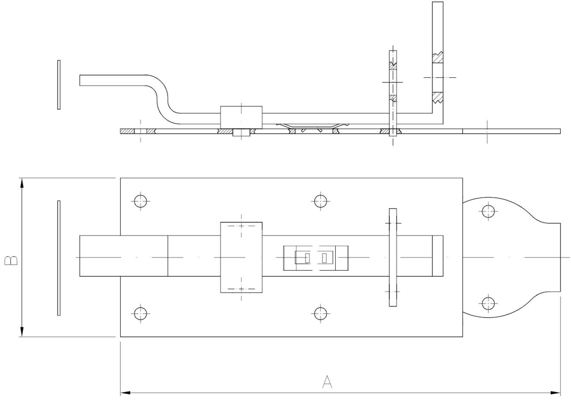 The folded closing door bolt is a functional and durable solution for securing doors, gates, and other elements requiring secure locking. It features a curved bolt, providing additional flexibility and allowing for use in various situations.