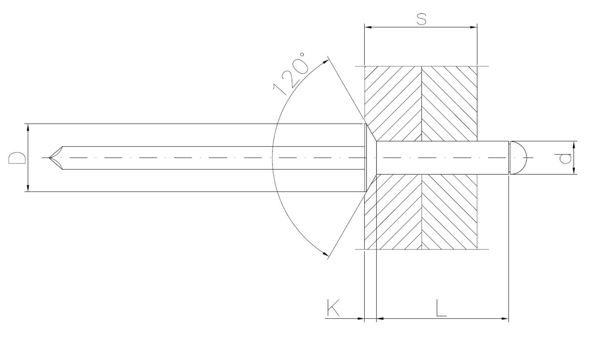 Countersunk head 120° blind rivet, aluminum-steel are highly effective for joining two or more components. They can easily connect surfaces made from the same material as the rivets as well as from entirely different materials. A significant advantage of break-off rivets is that they can be used effortlessly in situations where access to the joined elements is difficult.