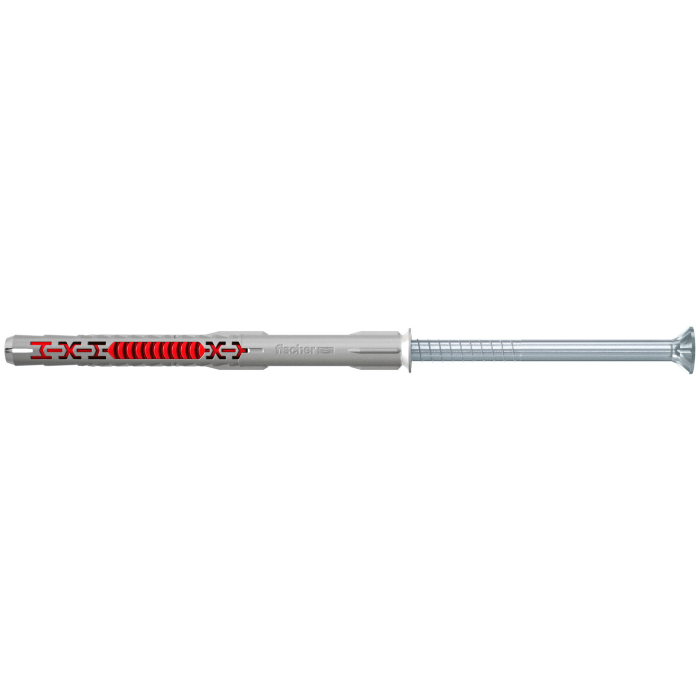 The fischer DuoXpand frame plug with two different anchorage depths and a countersunk head is designed for multiple-point attachment of non-structural systems in concrete and masonry. Thanks to its special geometry and material combination, the plug expands optimally in the base material. The range includes sizes with a diameter of 8 and 10 mm and plug lengths of up to 230 mm. The DuoXpand plug with a countersunk screw is particularly suitable for attaching wood to concrete or brickwork.