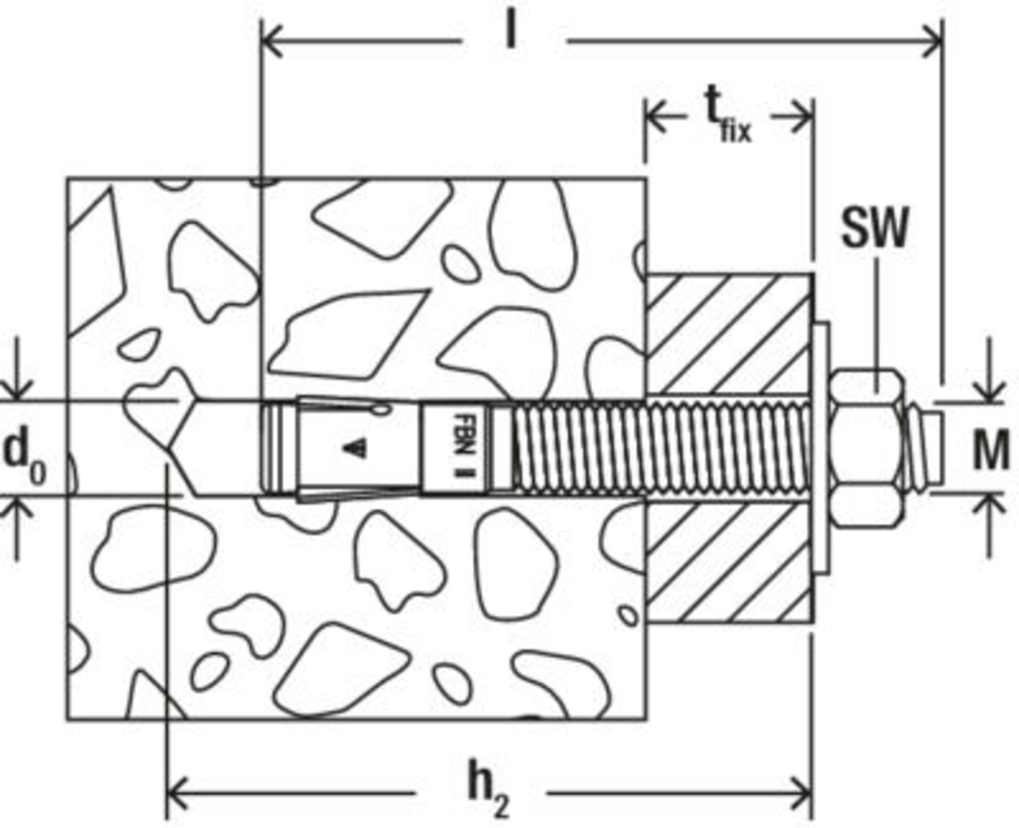 The fischer FBN II bolt anchor with large washer is a steel anchor for economical fastenings in non-cracked concrete. Thanks to the large, pre-assembled washer, the galvanised steel anchor is recommended for fastening beams or other timber structures. Thanks to the use of a long thread and two different anchoring depths, this anchor is very versatile. In addition to pre-assembly and push-through assembly, it can also be used in stand-off assembly.