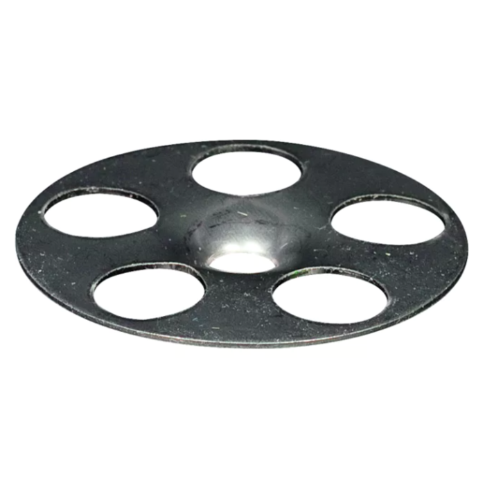 Galvanized steel insulation plate, in combination with screws, is used to attach insulation boards