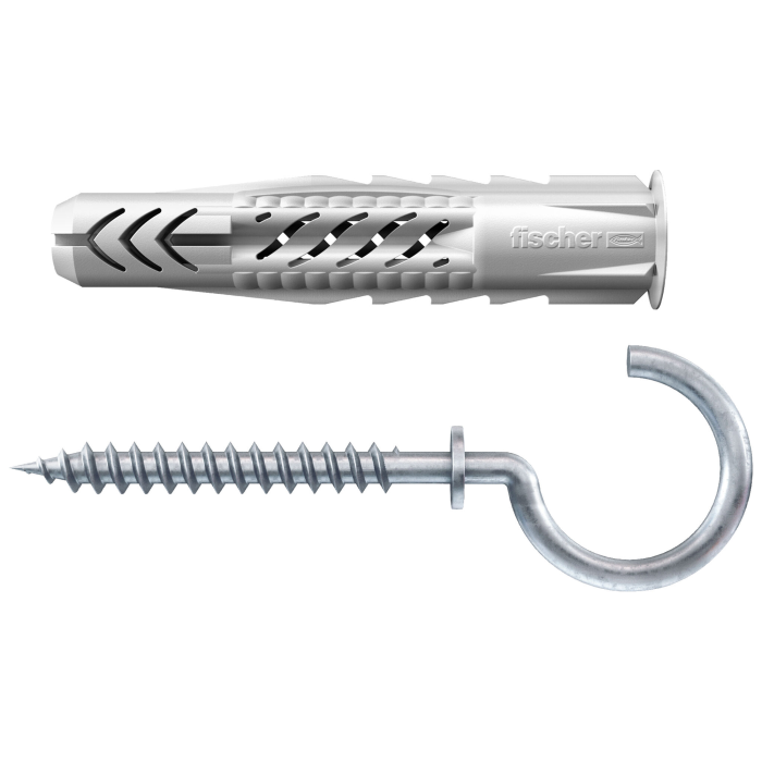 The fischer UX universal expansion plug is made of high-quality nylon. The plug expands in solid base materials or loops in hollow bricks or outside the board, which ensures good fixing. This means that fischer UX plugs can also be used when the base material is unknown. The collar on the edge of the plug prevents it from sinking too deep into the hole. In the rimless version and for greater anchoring depths, the UX universal plug is used for push-through installation.
