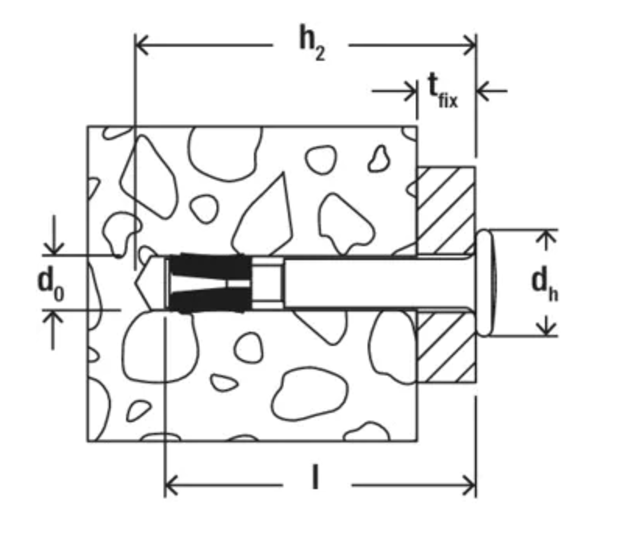 The fischer FNA II anchor with flat head is made of stainless steel. The FNA II anchor is set with a few hammer blows in a fast push-through installation and expands automatically when the load is applied. The cone is pulled into the expansion clip and then presses against the drill hole walls. The fischer FNA II nail anchor with flat head is mainly suitable for fastening fire protection boards, cables or hangers inside buildings.