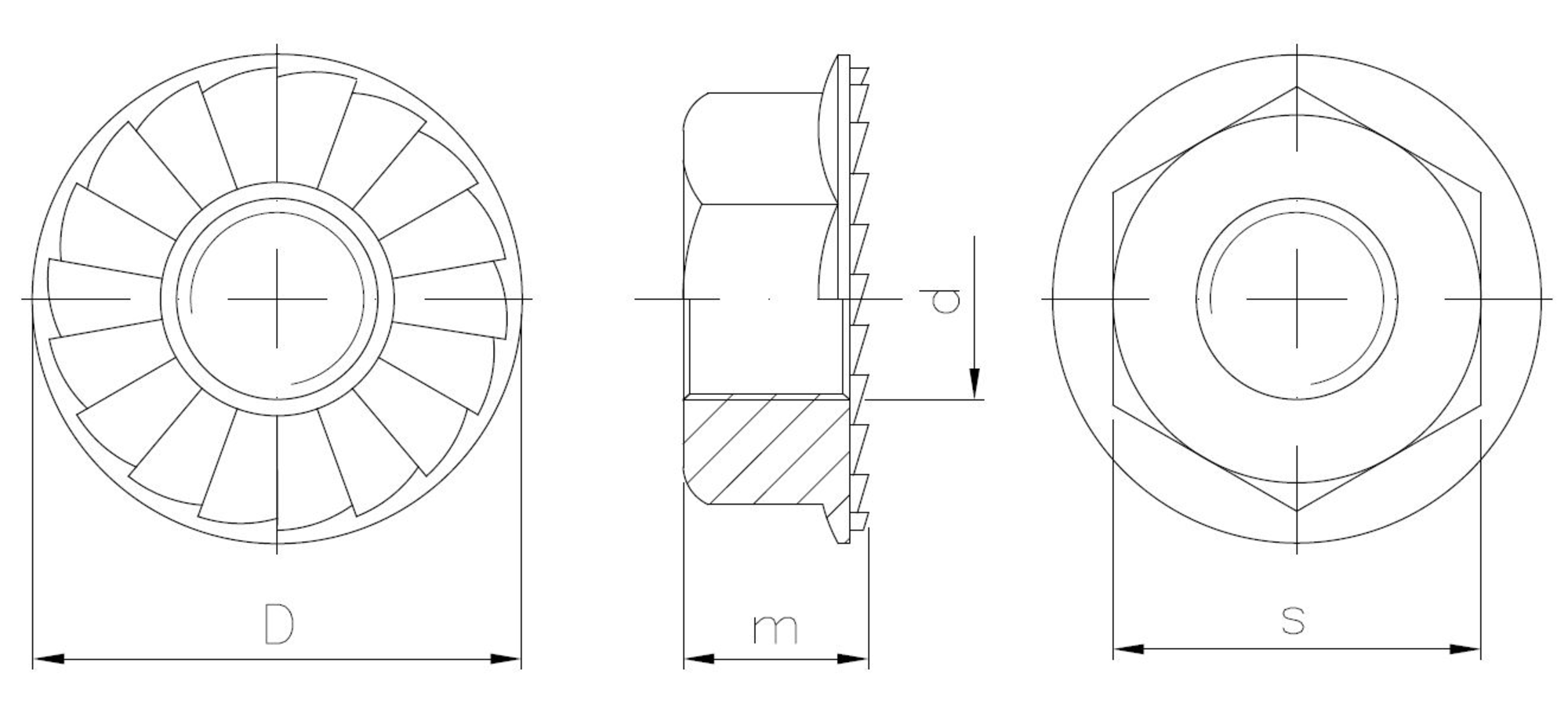 The Hex nut with serrated flange is perfect for applications where ensuring greater stability, durability, and protection against self-loosening is crucial. It is widely used in industries such as manufacturing, construction, mechanics, and other sectors where connections require additional support and security.