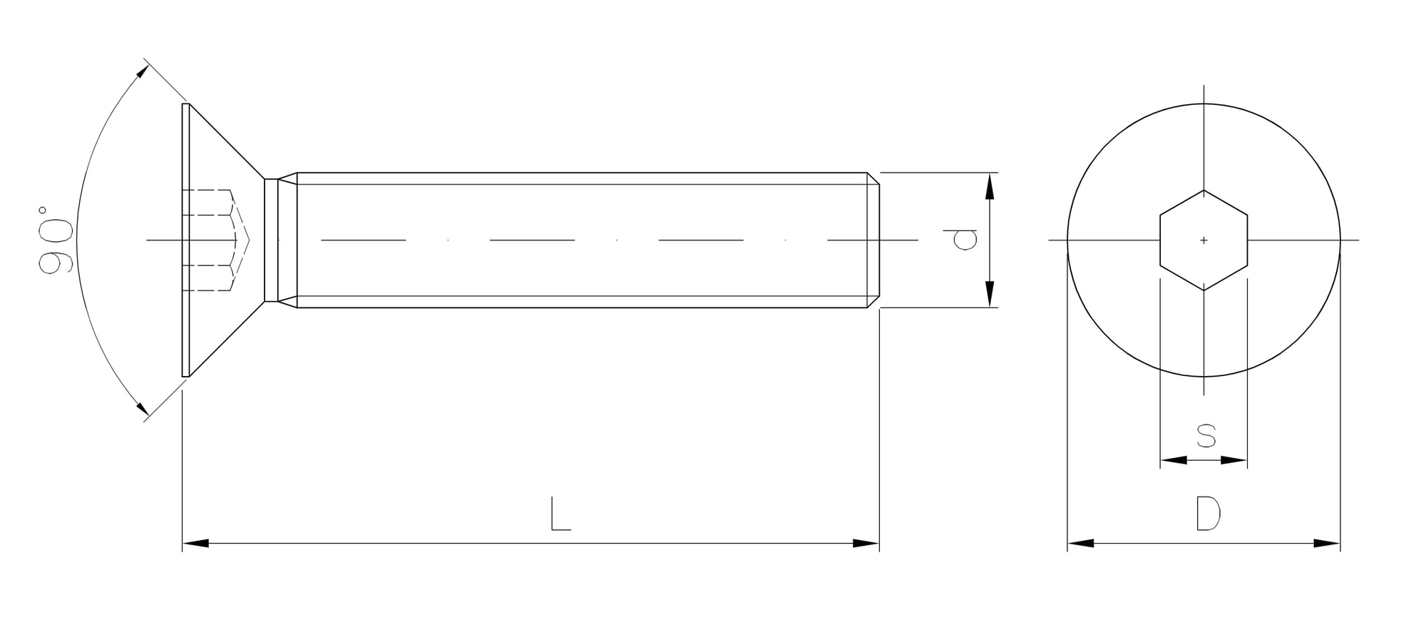 Hexagon socket countersunk head screw recess is an advanced fastening element that combines a conical shape for effective screwing and a practical Allen recess. This design ensures convenient fastening and tightening using an Allen wrench.