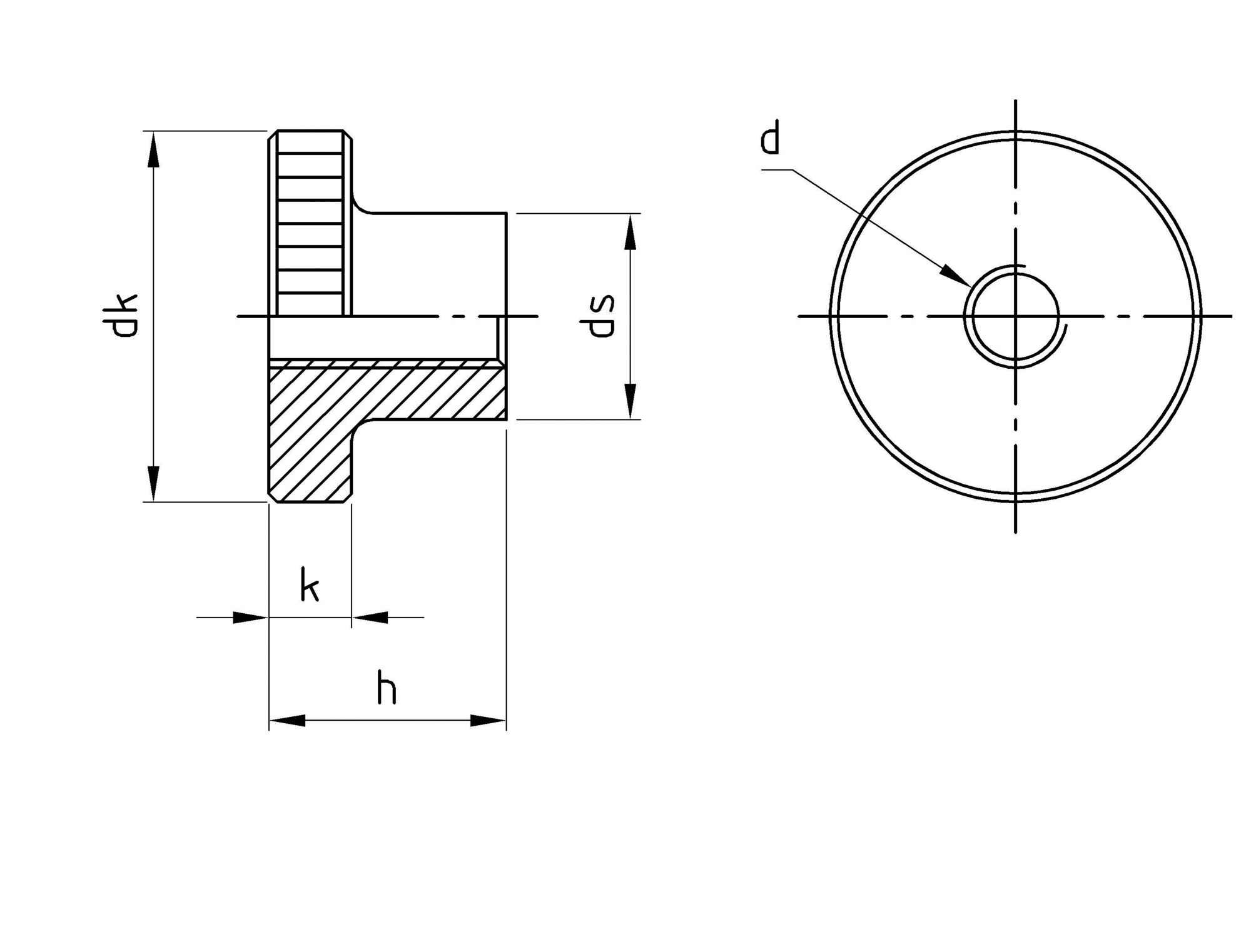 Dimension d [mm] Dimension m [mm] Dimension D [mm] Dimension s [mm] Dimension k [mm] Material Unit of measure Availability Show More