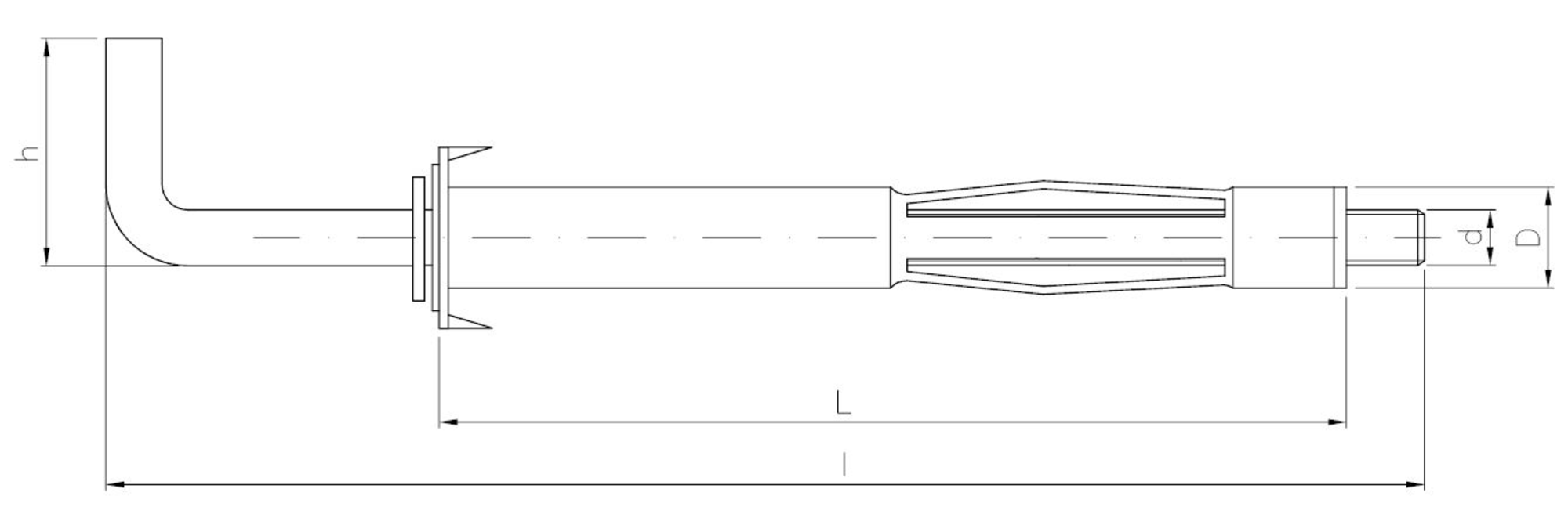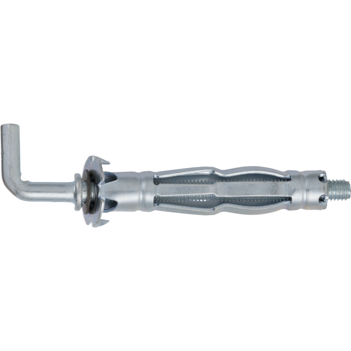 The hollow wall anchor with L type hook is a fastening element used in various mounting applications. Its primary purpose is to provide a durable and secure connection in hollow spaces such as drywall, ceiling tiles, and other soft materials. This product is equipped with an L type hook, allowing for the suspension of various loads, making it a useful tool in many applications.