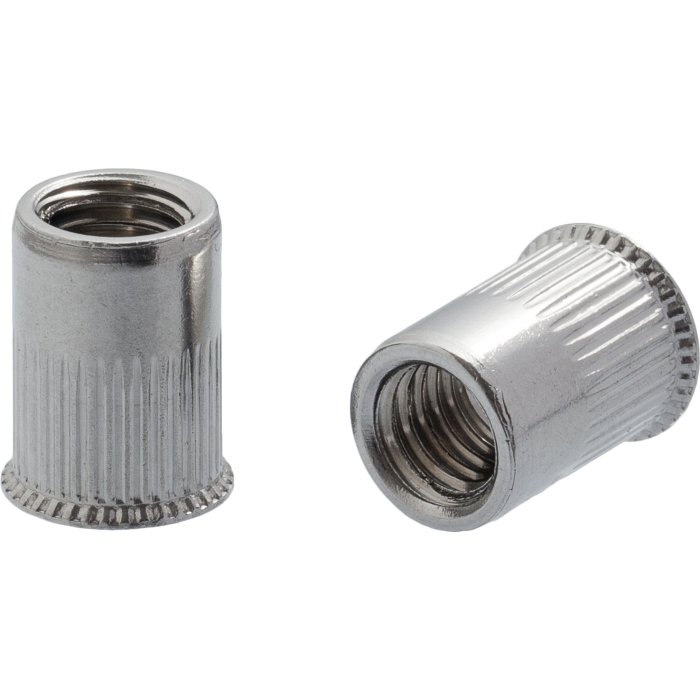 Closed grooved flange rivet nuts are fastening components designed to create strong and durable connections in thin-walled materials. Their closed-end design provides sealing and protection against water, dust, and other contaminants, making them ideal for environments exposed to moisture and corrosion. The grooved surface ensures additional stability, preventing the rivet nut from rotating during installation.