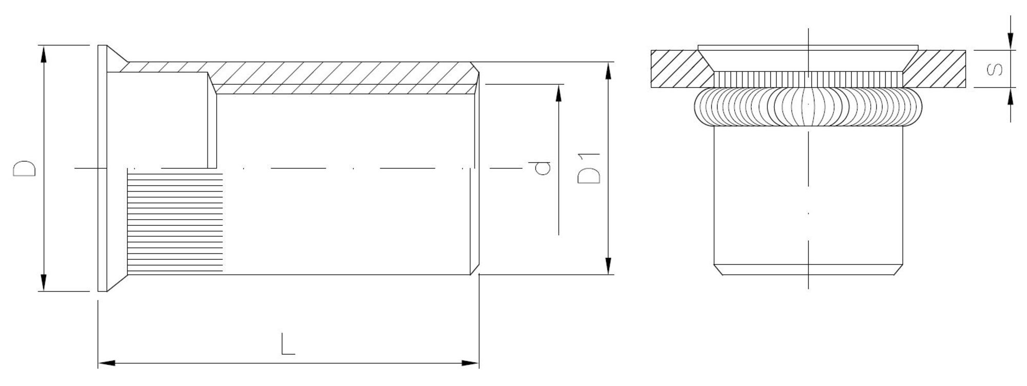 Applications: Closed grooved flange rivet nuts are widely used in the automotive, electronics, construction, and metal industries. They are perfect for situations where durability, corrosion resistance, and sealing are required, such as in steel constructions, industrial equipment, and vehicle body components.