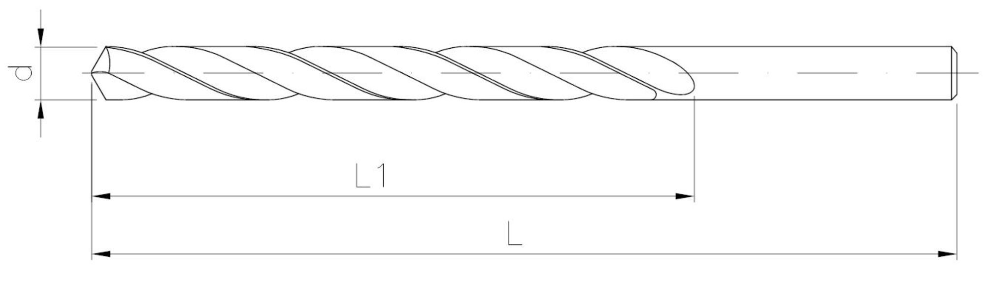 Long twist drill bits with cylindrical shank, grinded