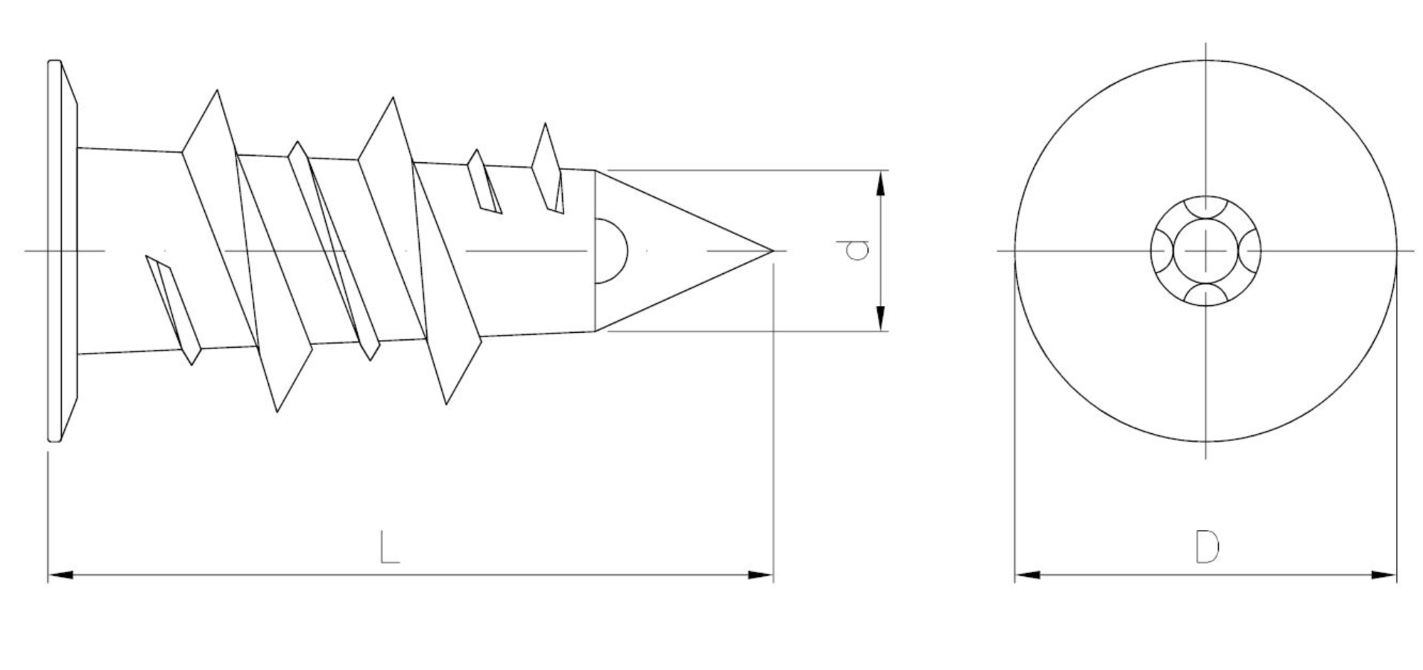 This plug is suitable for fastenings in plasterboard, aerated concrete, and gypsum.