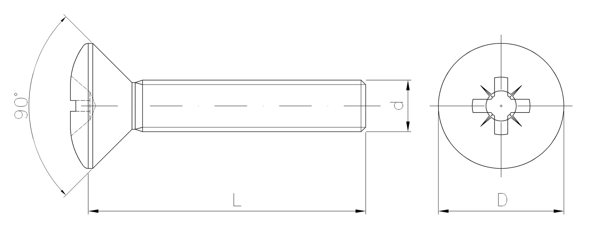 The metric screw with a countersunk head and full thread is a typical fastening element used in a wide range of applications for joining various materials. Its unique shape and design provide a secure and durable connection in different operating conditions.