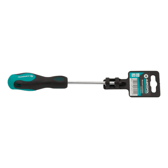 The Denzel screwdriver, made of chrome-vanadium steel (CrV) with a three-component handle, is designed for assembly and disassembly of Pozidriv threaded connections. Thanks to the magnetic socket, the screwdriver can be operated with one hand while holding the mounted part with the other. The tool is suitable for professional use.
