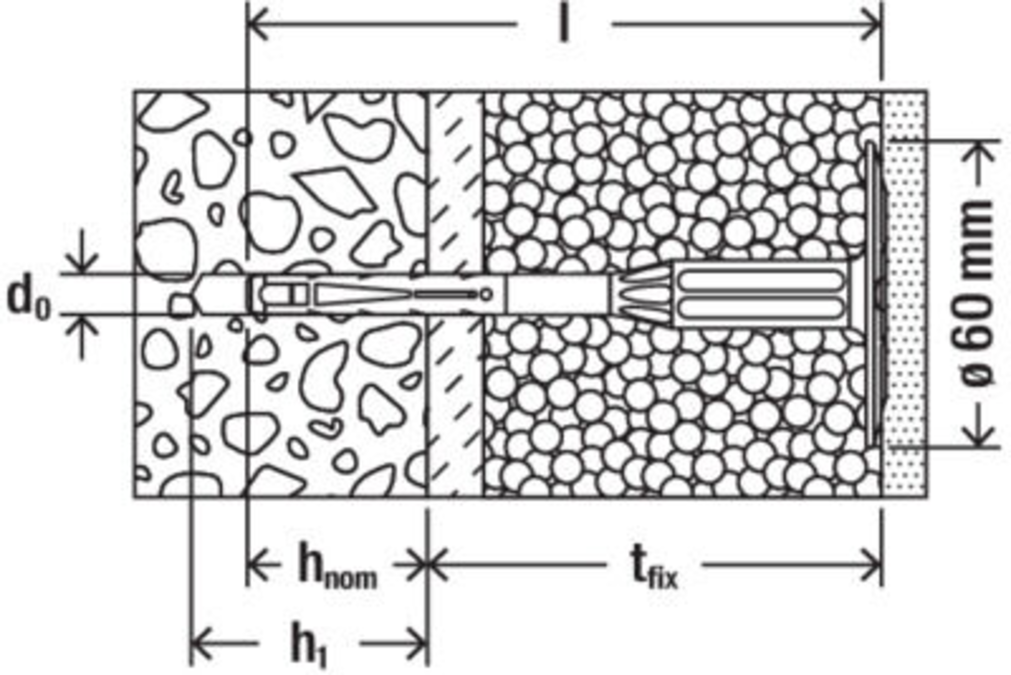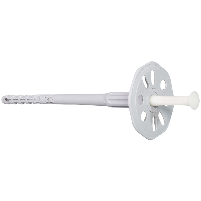 The ETA approved fischer render fixing FIF-CN II is ideal for securely fixing pressure-resistant insulation up to 350 mm thick in the plaster façade such as polystyrene boards, mineral wool boards, wood wool lightweight panels and cork boards / coir matting in concrete, solid and perforated brick. The render fixing comprises a grey plug sleeve with attached preshaped octogonal disc and a steel-plastic nail. The FIF-CN II is set using a hammer. The innovative plastic nail with a steel point supports high loads.