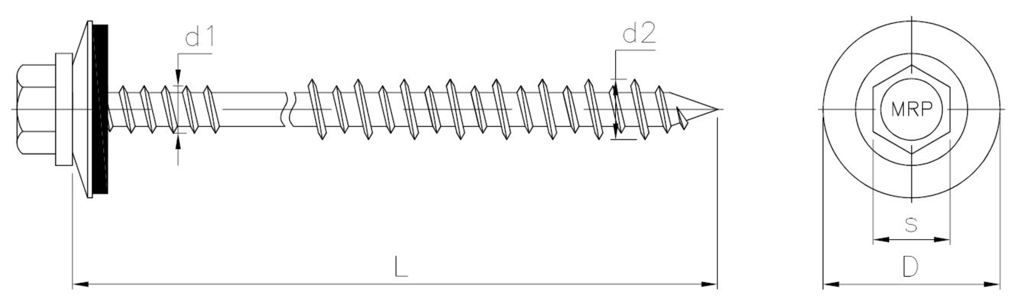 Sandwich panel screw with EPDM washer for wood and concentrate