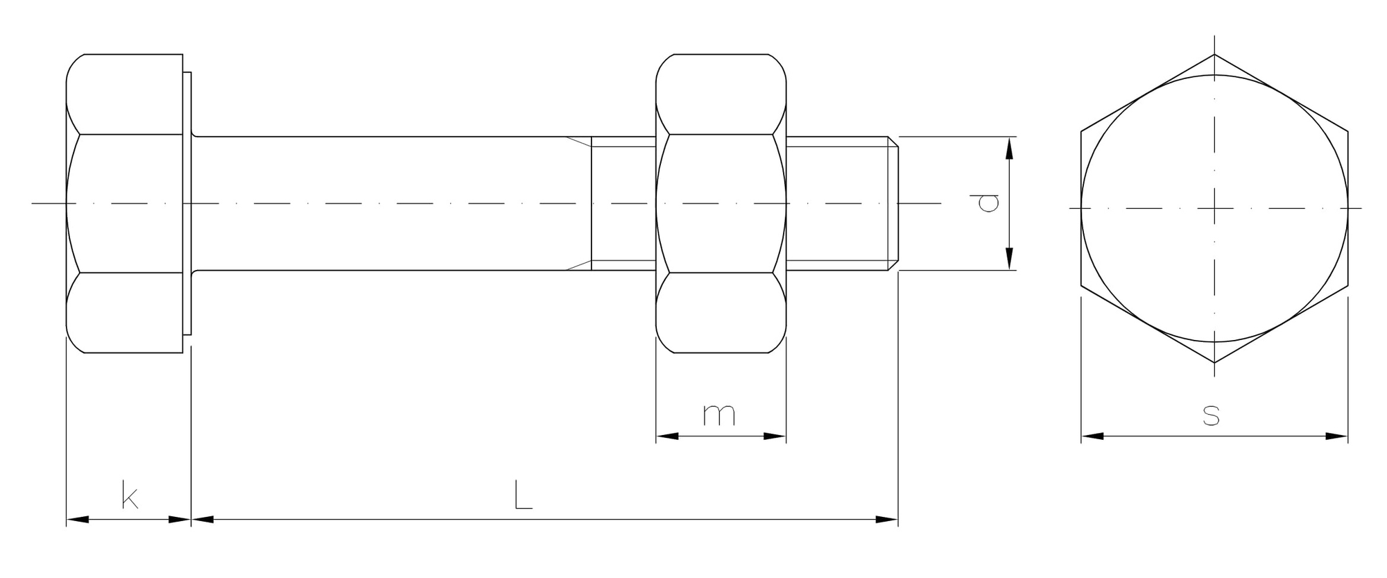 SB non-preloaded structural bolt set, partially threaded