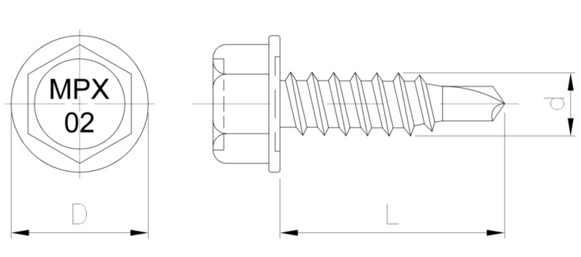 Self-drilling screw (bi-metal). Drilling capacity max. 2 x 1,25 mm