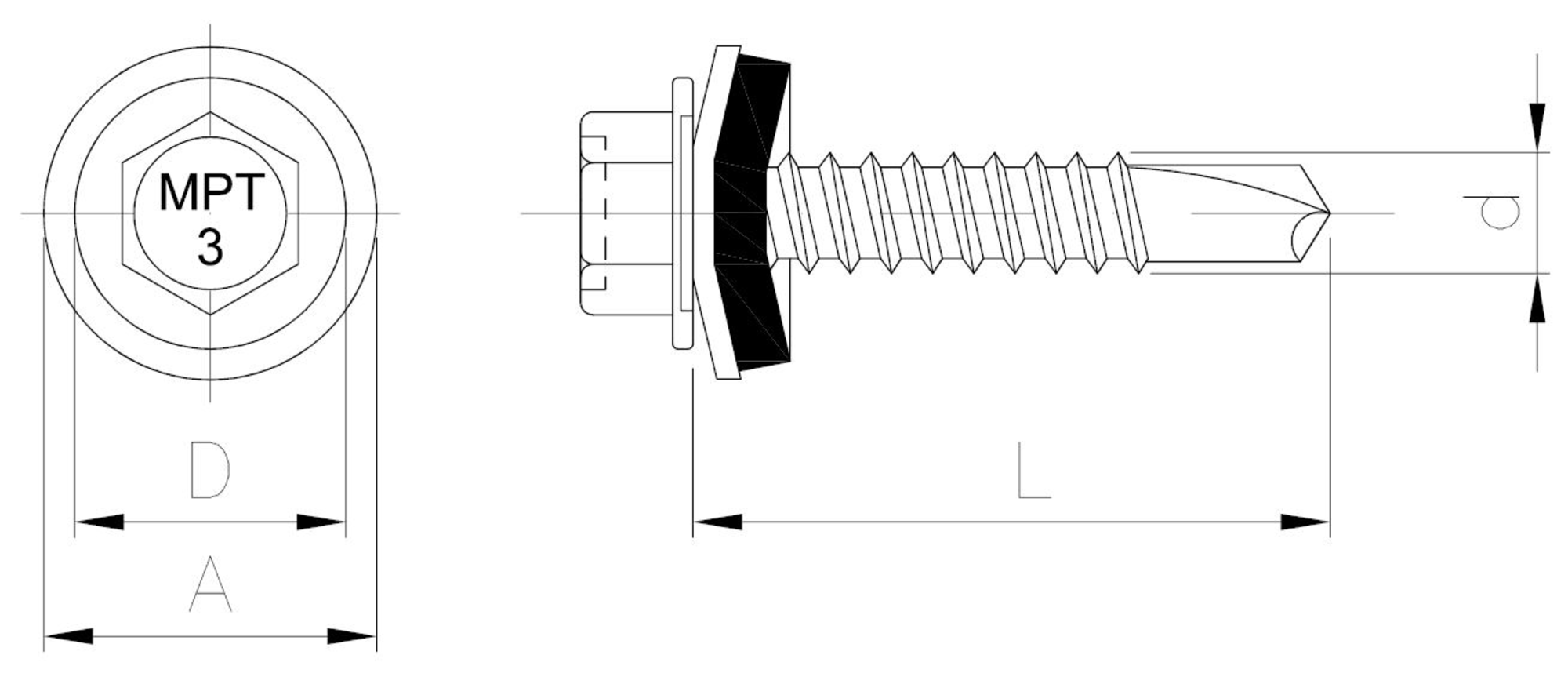 Self-drilling screw (ceramic coating). Drilling capacity max. 3 mm