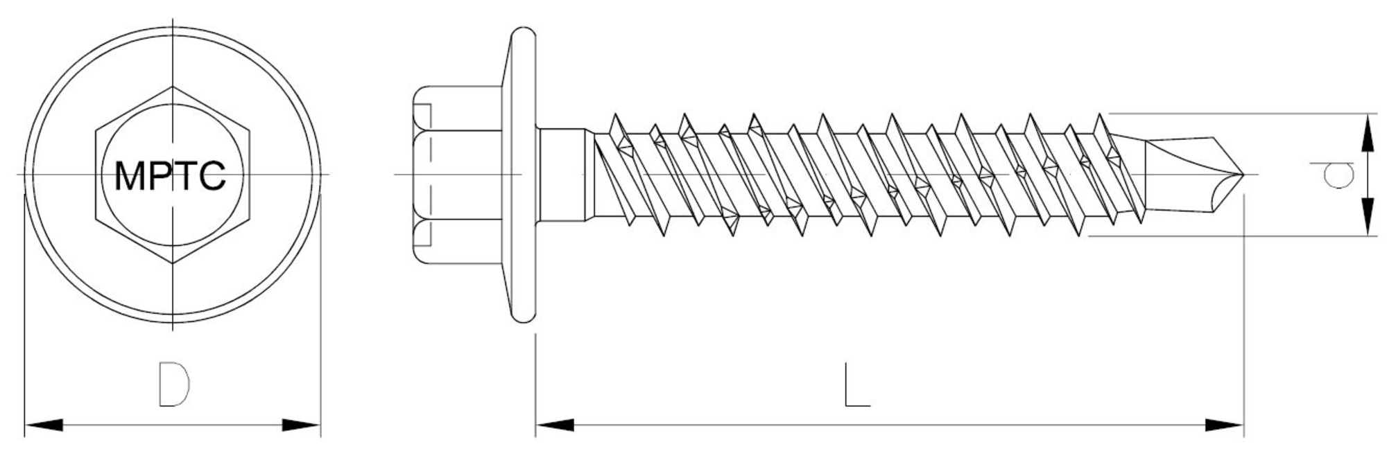 Self-drilling screw with integrated washer for wood and concrete (ceramic