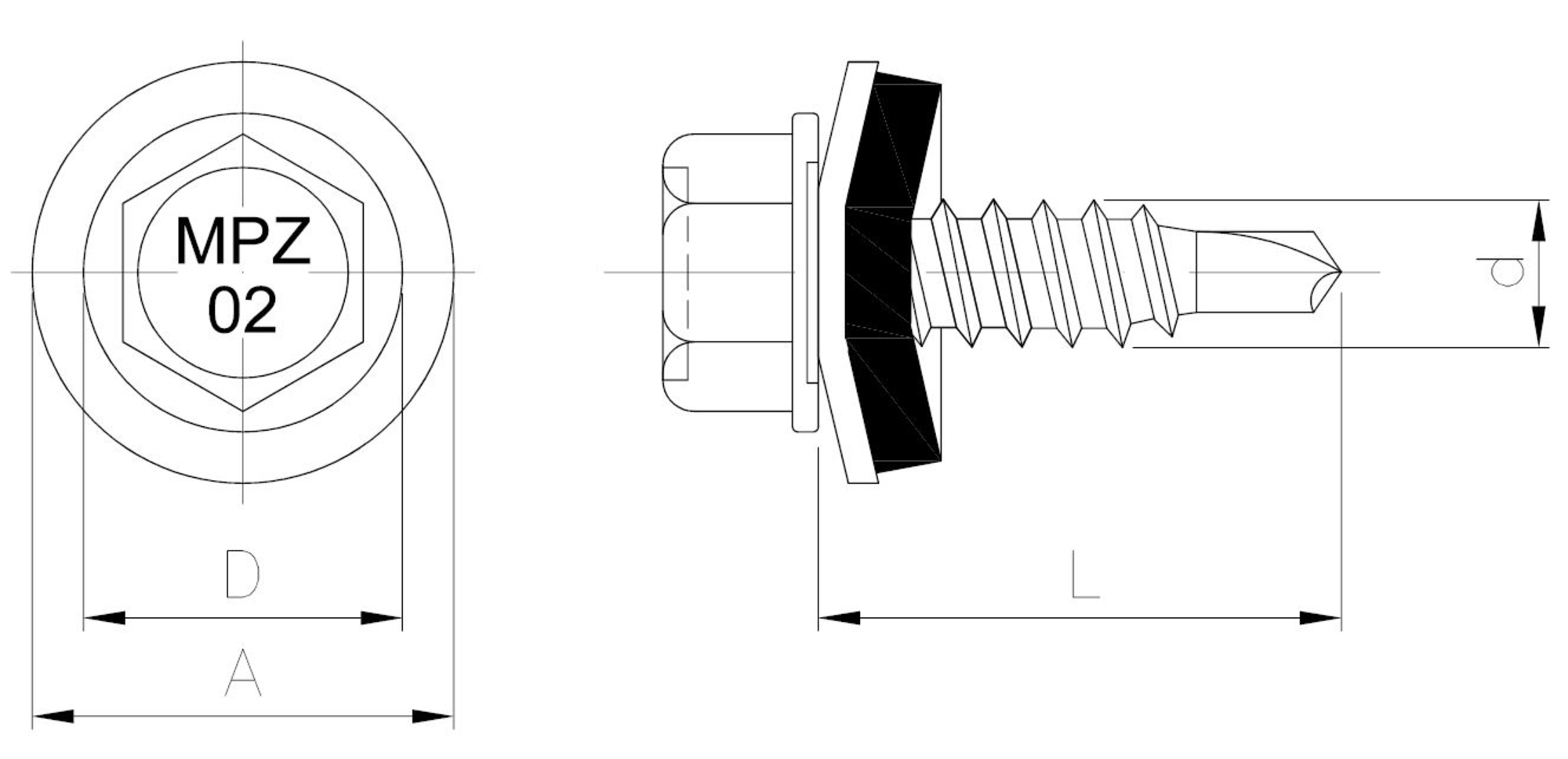 Self-drilling screw (zinc coating). Drilling capacity max. 2 x 1,25 mm