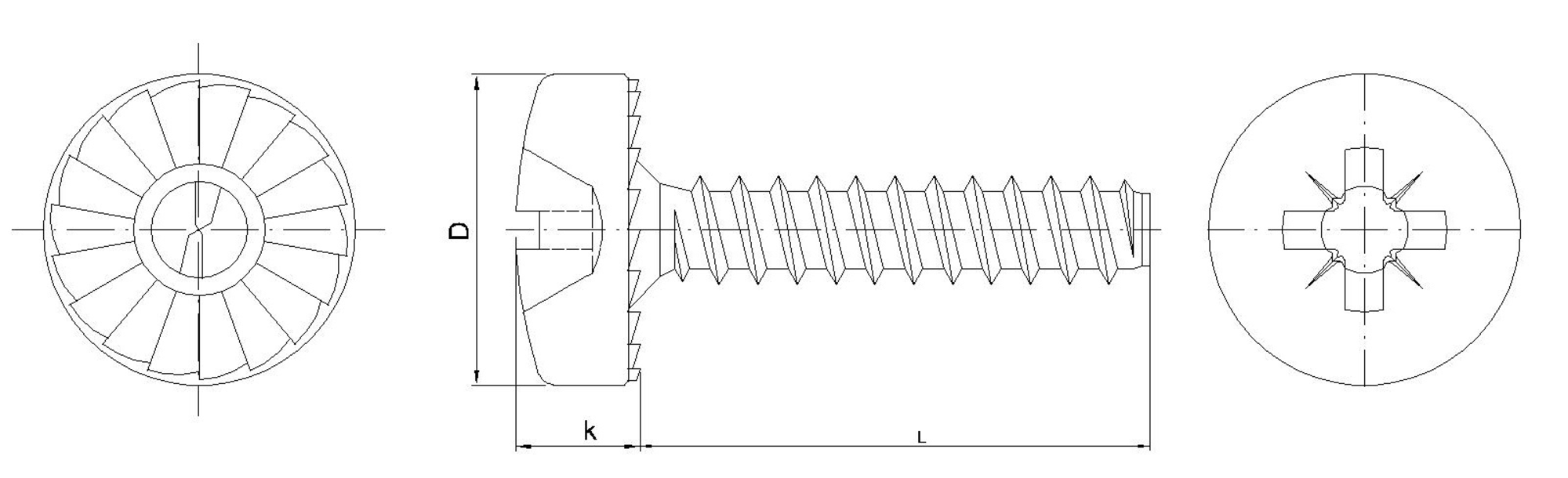 Serrated pan head sheet metal screw and locking mechanism is a specialized fastening element designed for secure fastening of sheets and other thin materials. Its unique locking mechanism further strengthens the connection, ensuring stability and safety.