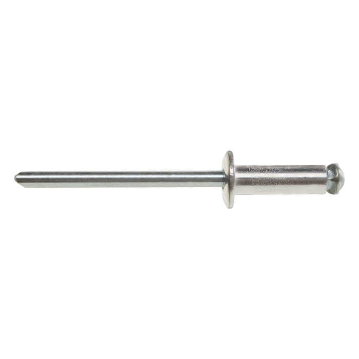 A Single-sided rivet with core (breakaway) standard, flat head Al/Al, also known as a pop rivet, is a standard fastening element used across various industries, as well as in mechanical and construction applications. In this specific version, the components are made of aluminum, making them lightweight yet strong under load.