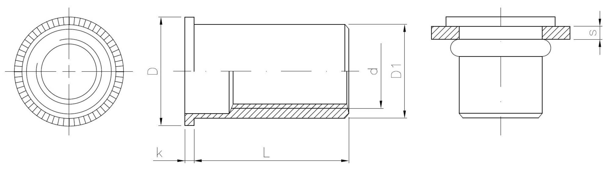 Steel rivet nut with flat head are the most commonly used type of rivet nuts. The flange design ensures proper pressure and stable seating of the rivet nut in the hole.