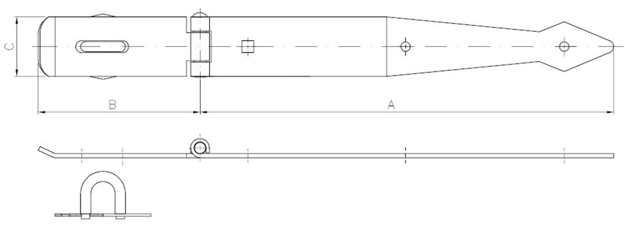 The strap gate hinge with lock is a robust solution for controlled opening and closing of gates. This advanced hinge not only ensures smooth operation of the gate but also features a built-in locking mechanism that provides security and access control. It is perfect for areas where privacy and safety are essential.
