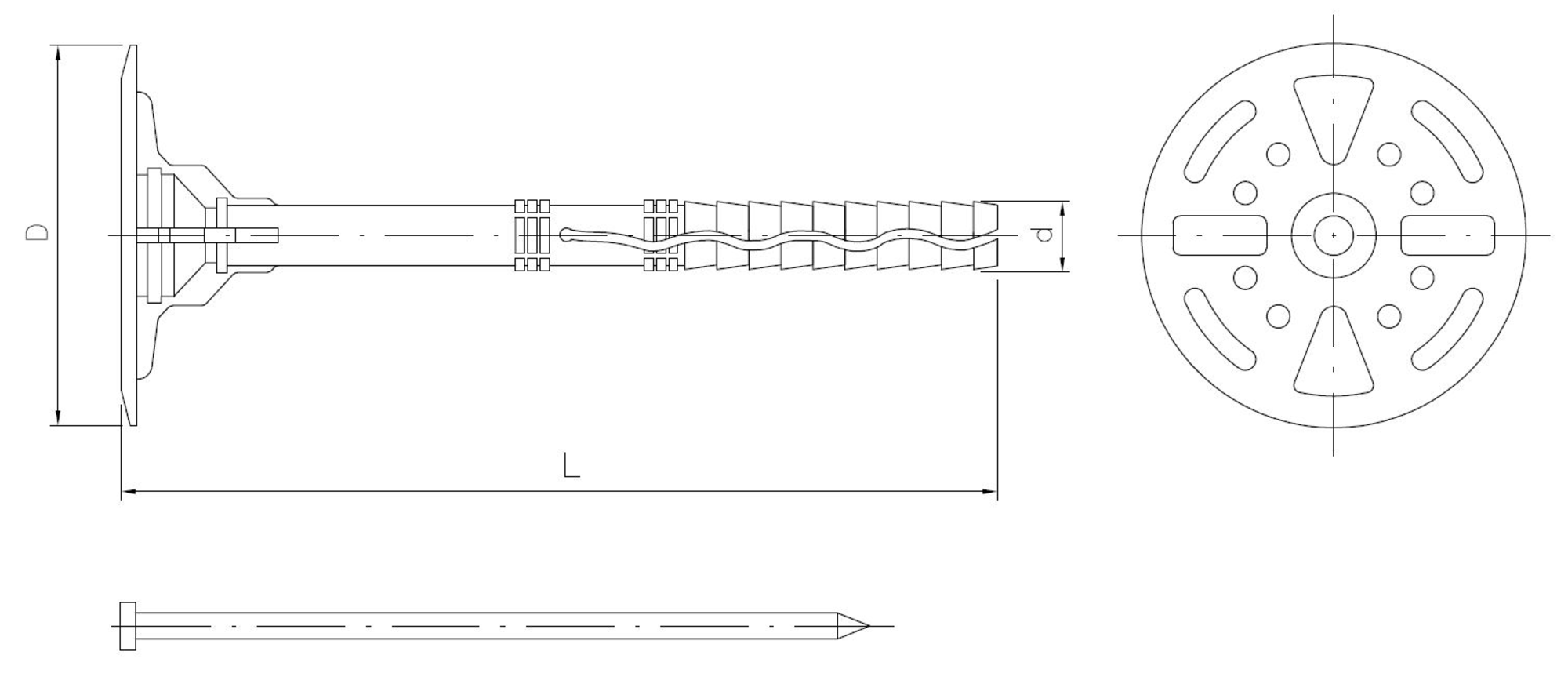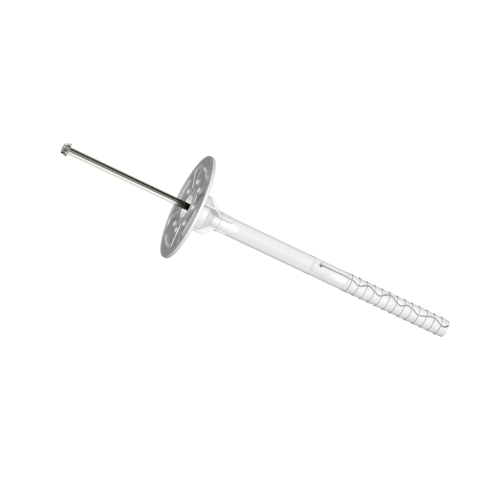 Thermal insulation plastic plug with metal pin and short expansion zone