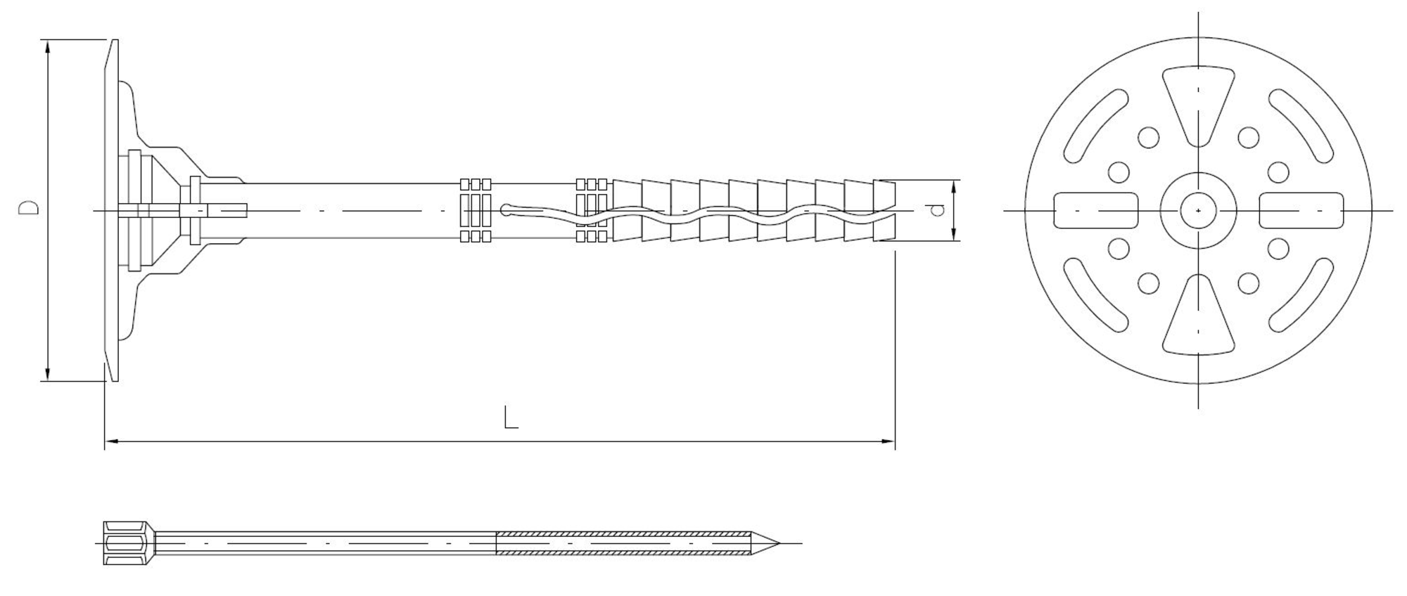 Thermal insulation plastic plug with plastic pin and long expansion zone