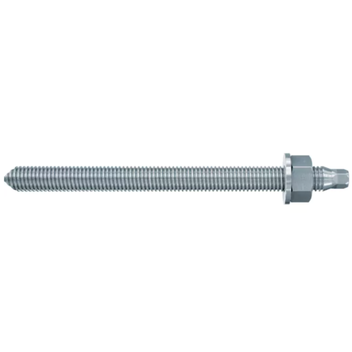 The fischer RG M threaded rod can be used with fischer resin ampoules RSB and RM II and fischer injection mortars FIS SB, FIS EM, FIS EB, FIS V, FIS VL, FIS P Plus, FIS P and FIS Green. Thanks to its pointed tip, it is particularly recommended for RSB and RM II resin ampoules. The wide range of diameters M8 - M30 and different steel grades significantly expands the range of applications. The system is particularly suitable for economical fastening of handrails, steel structures and advertisements inside and outside buildings. The RG M rod is installed using a setting tool for glued anchors and a hammer drill with a rotational and driving movement. During installation, the capsule is broken by the characteristic bevelled tip of the rod, activating the resin. Technical assessment conditions apply for various resin ampoules and injection mortars.
