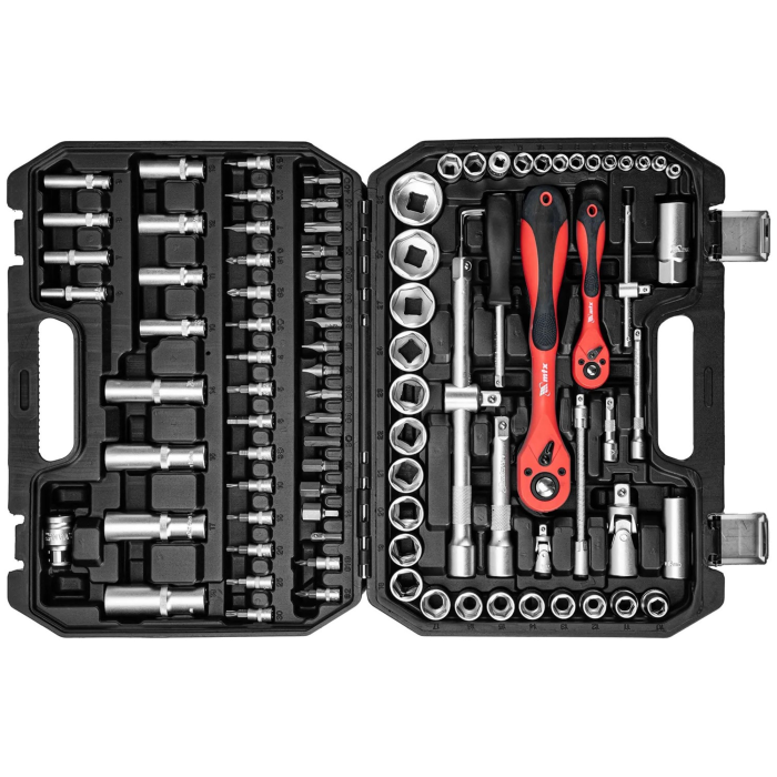 - Durability and wear resistance: The components of the set are made from chrome-vanadium steel, and the housing of each ratchet features a protective coating.