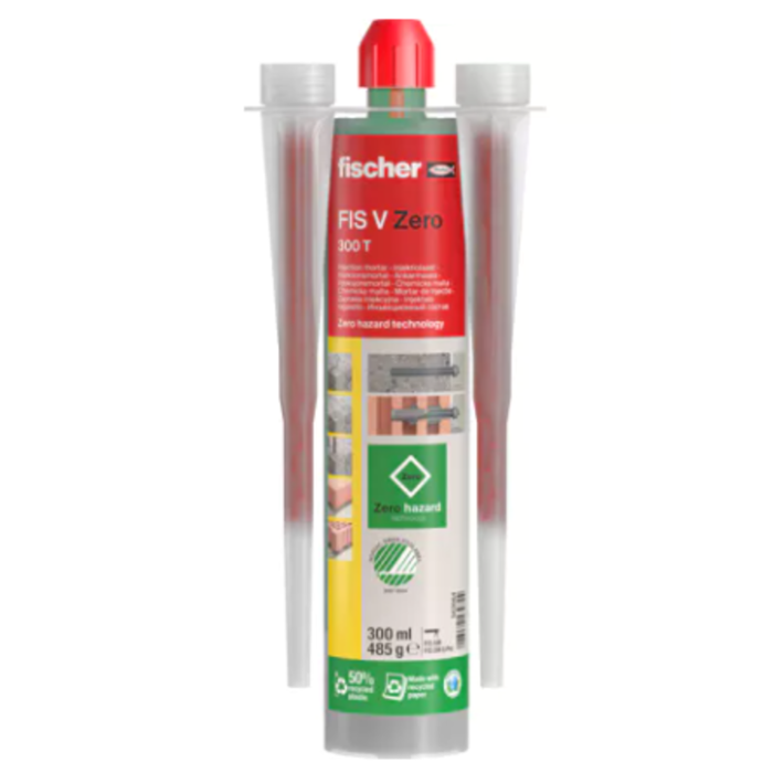 The universal fischer mortar FIS V Zero, based on an innovative and special formula, offers maximum safety for people and the environment. FIS V Zero does not contain any hazardous materials, such as dibenzoyl peroxide, which could irritate the eyes or harm the environment, and therefore no additional warning signs are required on the label. FIS V Zero is approved for fixings in cracked and non-cracked concrete, masonry and for the insertion of reinforcing bars. In addition, the anchor enables special applications, such as anchoring in water-filled holes as well as installation at temperatures from -10 to +40 °C. All these properties are described in the ETA Technical Assessment and enable installation in all weather conditions.