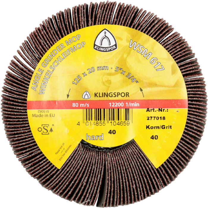 WSM 617: Flap wheels for grinding steel, stainless steel, paints, plastics, and wood